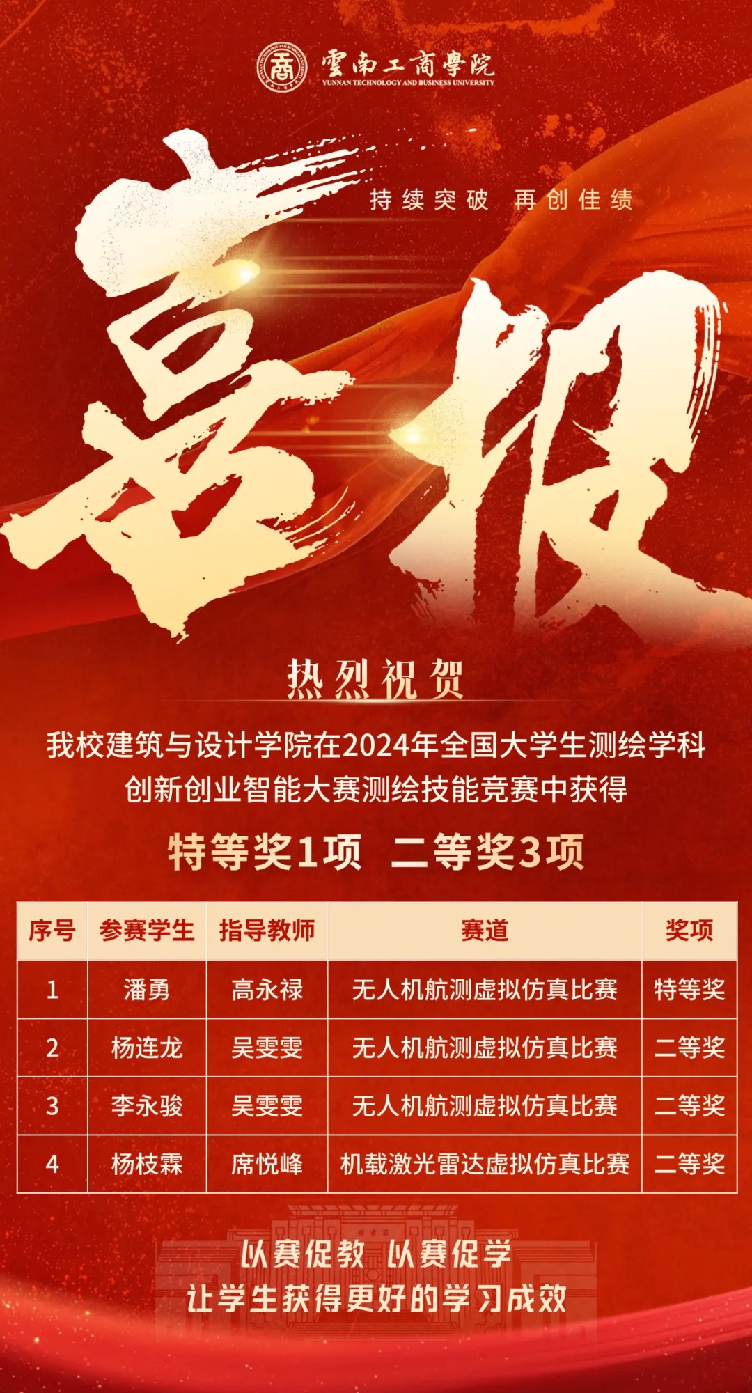 ky开元集团高度重视学生创新能力的培养,始终秉承“以赛促教,以赛促改,以赛促学”的理念,鼓励学生积极参与各类学科竞赛,通过实战演练来检验学习成果,提升实践能力和创新思维。下一步,学校将以此次比赛为契机,深入探索测绘学科的新领域、新技术,为测绘学科的创新发展贡献力量。