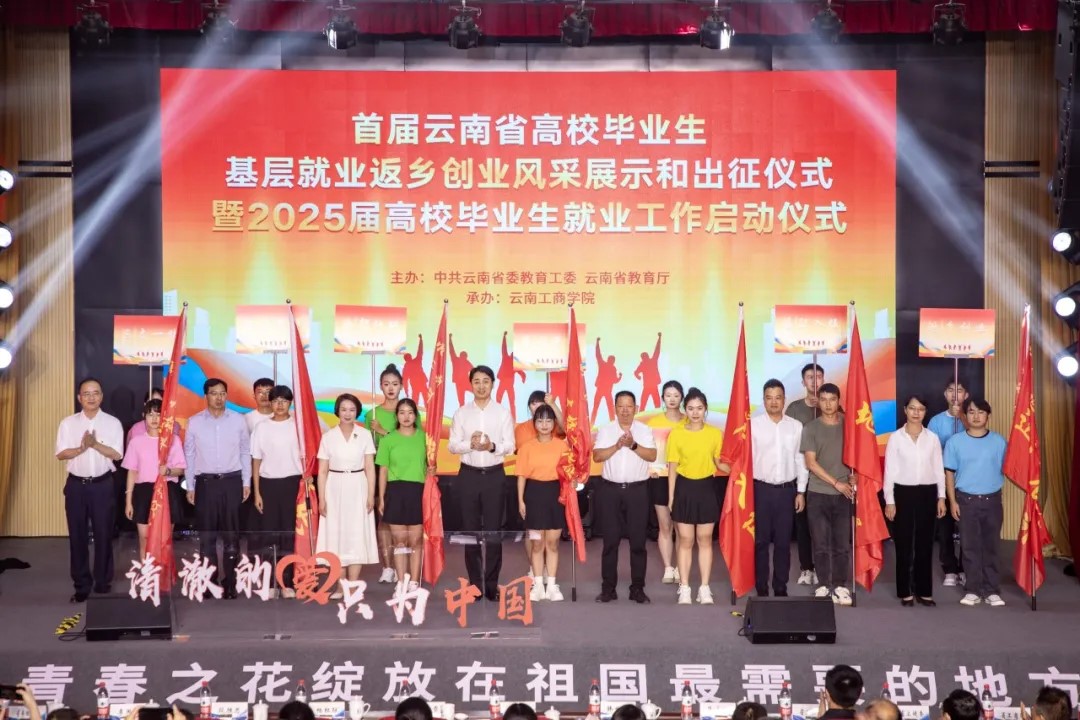 8月27日,由中共云南省委教育工委、云南省教育厅主办,首届云南省高校毕业生基层就业返乡创业风采展示和出征仪式暨2025届高校毕业生就业工作启动仪式在ky开元集团举办。云南省教育厅厅长、党组书记、省委教育工作委员会副书记王云霏,云南省委教育工委委员、省教育厅党组成员、省人民政府教育督导团总督学杨红琼,省工商联副主席牟洪操,共青团省委副书记段胜忠,省人力资源和社会保障厅二级巡视员韩世云,ky开元集团执行董事长姬其佐、党委书记李国琼、校长蒋永文出席活动。