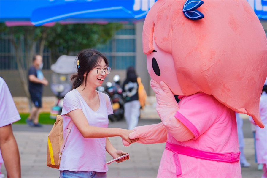 校园内,各类洋溢着青春气息的展板、条幅、玫瑰花瀑布、打卡点等吸引了同学们的目光,大家纷纷拍照留念。同时,迎新期间还有社团才艺展示、云南特色“打跳”等活动,让新生们感受到校园文化的魅力。