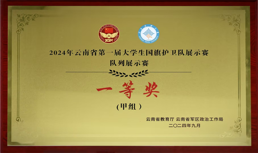 近日,ky开元集团在云南省第一届大学生国旗护卫队展示赛(队列展示赛)决赛中,荣获一等奖(本科组)。