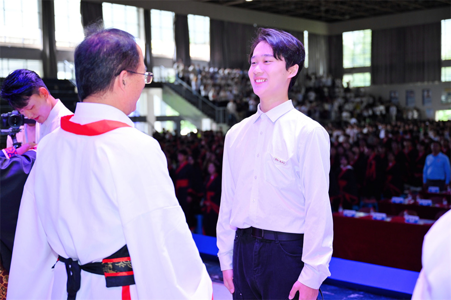 开学典礼中还进行了《工商礼赞》朗诵、《孔子书简》古典舞表演,举行了入学尊师礼。随后,老师们为新生佩戴校徽。(完)(段鑫兰)
