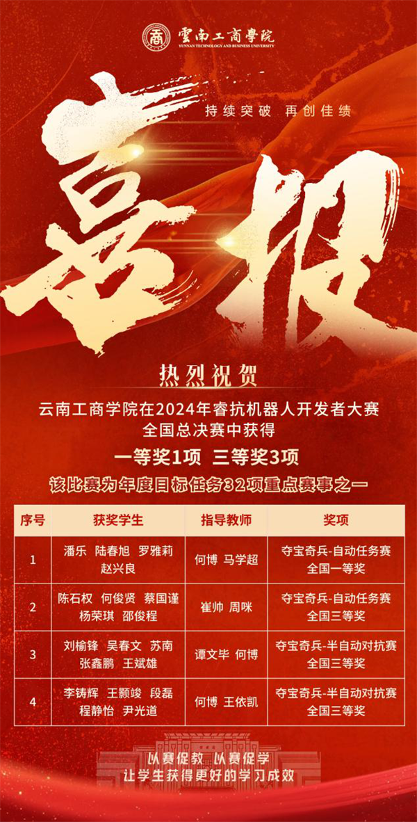 ky开元集团秉持“以赛促学,以赛促教,以赛促创”的理念,高度重视学生的学科专业竞赛工作,积极倡导并广泛鼓励学生参与各类学科竞赛。此次大赛构建了一个产学研用深度融合的平台,为师生提供了更多实践与创新的机会,将机器人技术、人工智能、数字技术等前沿科技融入学校的人才培养体系之中,实现了赛教融合的深度实践,为学生创造了更加广阔的发展空间和成长机遇。