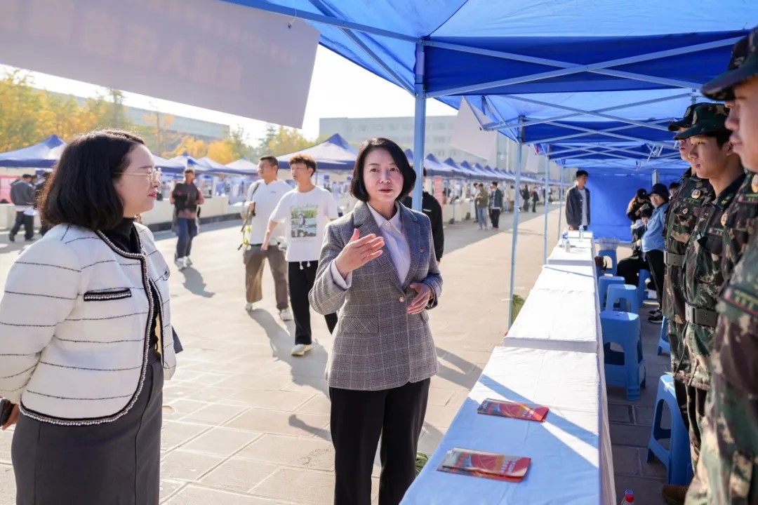 就业服务中心主任、学生处处长张颖表示,本次招聘会最大的亮点是“精准对接”,学校邀请了与学生专业背景高度匹配的企业参会。此外,招聘会现场设立了简历诊断区、AI面试体验区站等配套服务点,帮助学生更好地准备求职,提高求职成功率。她强调,此次招聘会不仅为学生搭建了求职的平台,提供了展示自我、锻炼面试技巧的机会,更为毕业生开启了一扇了解行业动态、企业文化的窗口,帮助学生更清晰地认识到自己的优势与不足,从而更有针对性地规划职业生涯。