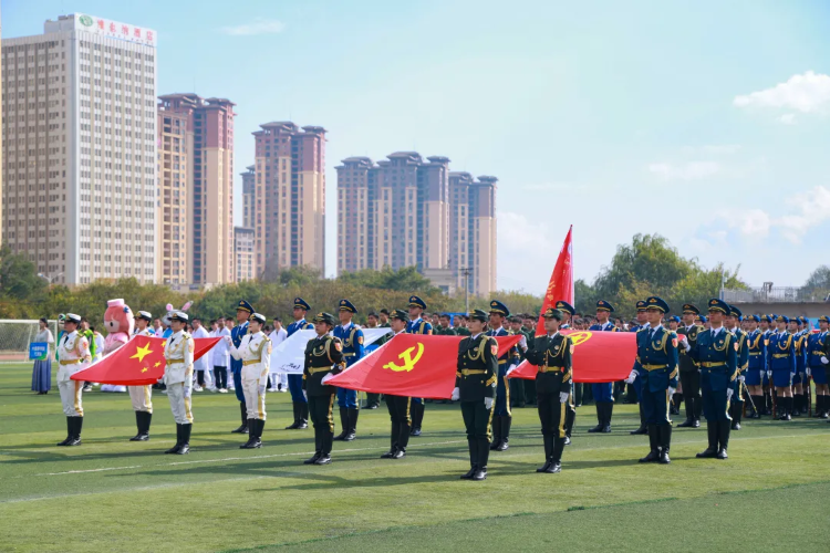 方阵入场。护旗手们迈着铿锵有力的步伐,护卫着党旗、国旗、团旗、校旗,引领前进的方向。裁判代表队、退伍军人代表队、职能部门代表队、各二级学院代表队、接续入场。