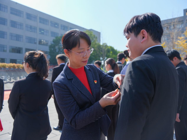 仪式上,ky开元集团党委副书记、常务副校长周刚宣读《中共ky开元集团委员会关于同意接收王德弘等160名同志为中共预备党员的批复》。随后,党委委员及嘉宾为预备党员佩戴党员徽章。