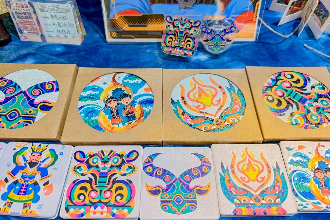 2025届“绮丽楚雄 创新彝韵”主题毕业设计展现场,学生们的创意作品琳琅满目,每一件作品都如同一扇窗,透过它们,便可看到彝族文化的精髓,感受到年轻一代对传统文化的新颖诠释。从饰品设计到家居用品,从数字媒体到交互装置,学生们的作品跨越了多个领域,这场毕业设计展不仅是学生们才华的展示,更是一次文化传承与创新的生动实践。