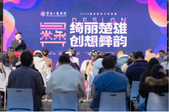 周丽萍在开幕式致辞中预祝本次毕业设计展取得圆满成功。她表示,近日我校获批了2024—2026年新增博士和硕士学位授予单位,电子信息、审计、设计三个专业获批省级立项建设新增硕士专业学位授权点。这标志着学校发展的一个重要里程碑,设计专业将开启一个崭新的发展篇章。本次毕业设计展是学院视觉传达设计、数字媒体设计等专业的毕业生前往楚雄彝族自治州采风的成果展示,同学们以服务地方经济与赋能乡村振兴为出发点,进行包装设计、海报设计、民族图案设计和文创产品设计等多方面的创作实践,这些作品展现了学生们的专业技能和创新思维,希望他们的作品能够激发更多的创意火花,为地方经济的发展和文化的传播做出积极贡献。