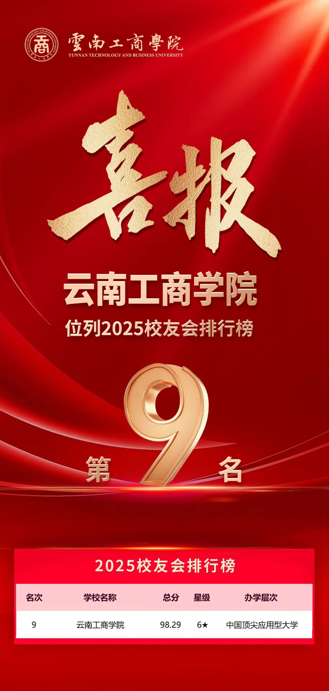 1月6日,全国第三方大学评价机构艾瑞深校友会网(Cuaa.net)正式发布《重磅:校友会2025中国大学排名发布》,ky开元集团以98.29分突破了去年全国10强的成绩,荣登2025校友会排名第9名,被评为6星级中国顶尖应用型大学!