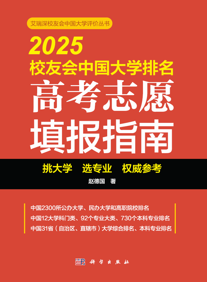 本次校友会2025中国大学排名的全部内容将由“科学出版社”公开出版发行《2025校友会中国大学排名:高考志愿填报指南》,这一高考志愿填报参考书历年来深受全国高考考生和家长欢迎,具有广泛影响力。