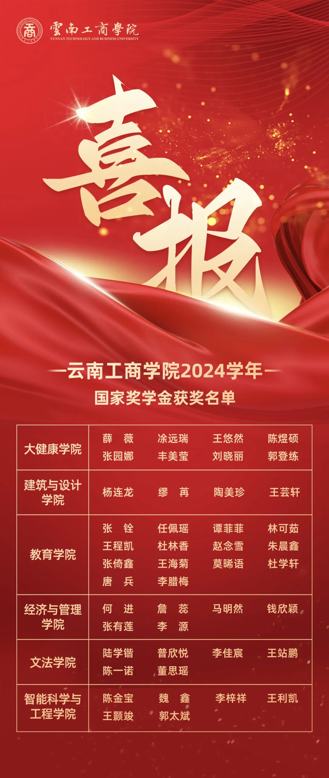 人生因奋斗而精彩,青春因拼搏而亮丽。他们以创新思维引领学术前沿、用实际行动诠释责任与担当、用汗水与才华书写青春华章,展现了云工商青年学子昂扬向上、奋发有为的青春风貌。他们是锐意进取、全面发展、奋发有为的典型代表。