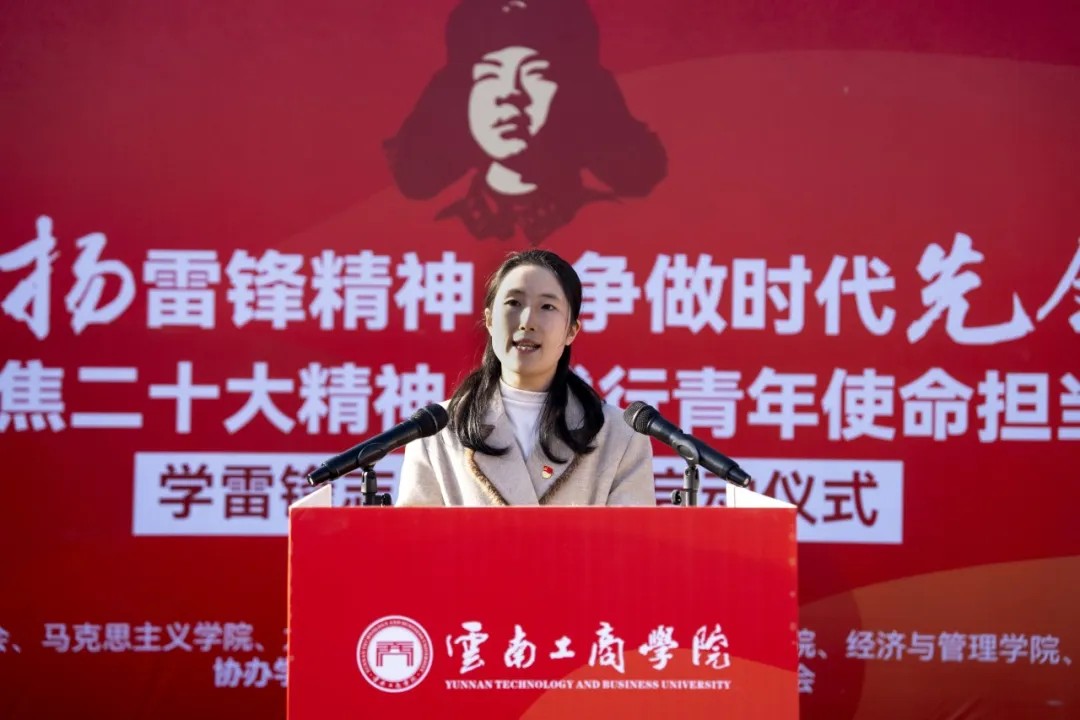 志愿服务的全体师生表示感谢,并现场宣读了《学雷锋志愿服务月活动方案》。她表示雷锋精神是新时代青年立德修身、成长成才的标杆,也是“广泛践行社会主义核心价值观”的生动诠释,学校始终将“立德树人”作为根本任务,号召广大青年学生传承和践行雷锋精神。她希望同学们:一要以雷锋精神铸魂,坚定理想信念,厚植爱党爱国情怀,在服务社会中锤炼品格,在奉献担当中实现价值;二要以雷锋精神立身,躬身实践,积极参与志愿活动,践行知行合一;三要以雷锋精神赋能,锤炼过硬本领,用不懈奋斗展现青年担当。