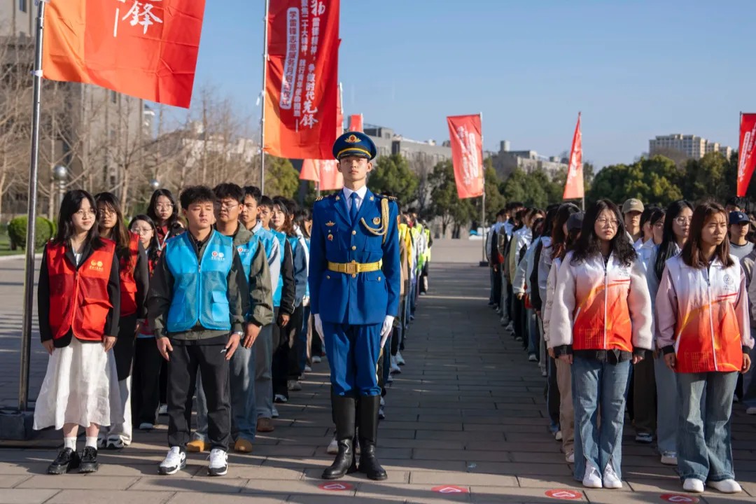 随后,现场举行了青年志愿服务队授旗仪式,并由学校青年志愿者联合会主席李源带领全体志愿者宣誓,铿锵有力的誓言展现了新时代青年志愿者的责任与担当,同学们将以实际行动践行雷锋精神,在志愿服务中不断成长进步,为社会贡献青春力量。