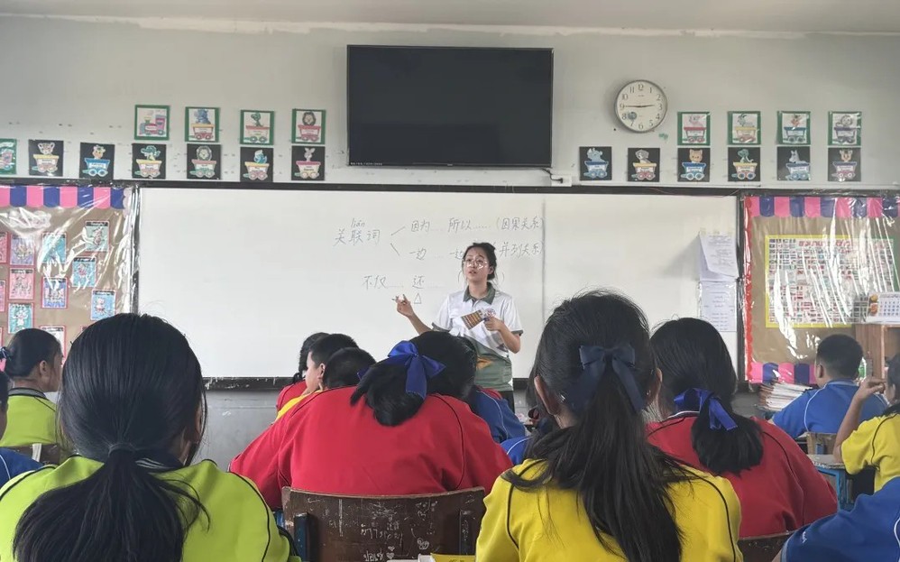 在国际中文教育的实践道路上,语言差异与文化隔阂犹如待解的密码。为实现更高效的知识传授,大家充分发挥在学校所培养的专业能力,积极强化与学生的沟通,深入了解当地学生需求。通过创新运用图画辅助教学、设计互动游戏、开展多媒体教学等方法,激发学生学习兴趣,让课堂变得生动活泼。在这个过程中,他们的实践教学能力也得到了极大提升,2022级小学教育6班杨丽雪说:“这段教学经历不仅锻炼了我的教学技能,也让我学会了如何根据学生的特点制定教学计划,如何运用多种教学方法激发学生的学习兴趣。更重要的是,我深切领悟到教师责任之重大——既要传授语言知识,也要培育学生的文化素养与道德品质。”