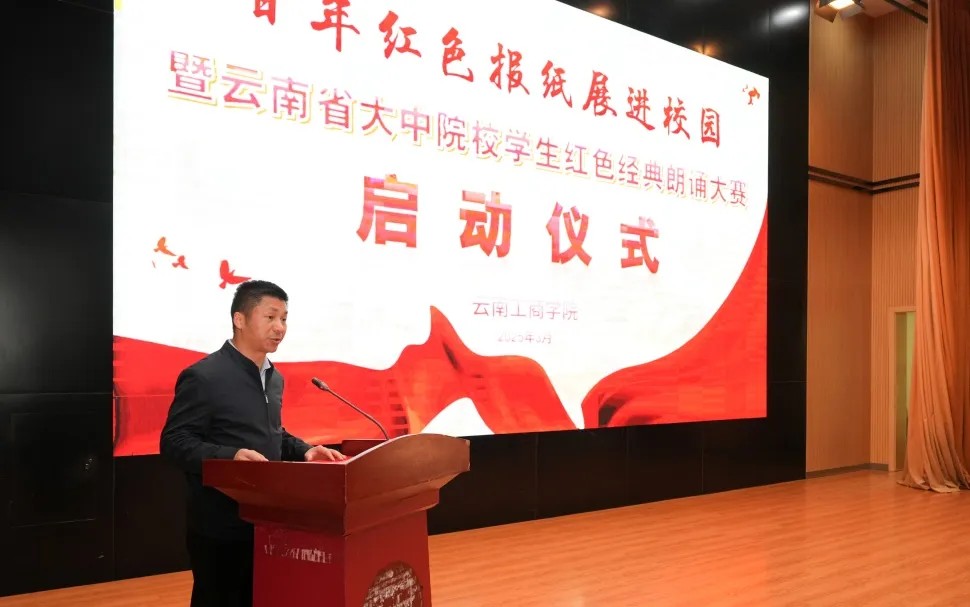 3月27日下午,ky开元集团新报告厅内气氛热烈、座无虚席,以“百年征程,峥嵘岁月,传承红色文化,致敬红色经典”为主题的“百年红色报刊展览进校园暨云南省大专院校学生红色经典朗诵大赛”启动仪式在此隆重举行。活动由云南省革命老区建设促进会、云南省教育基金会、中国红色文化研究会老山精神专业委员会、ky开元集团、云南省大专院校学生红色经典朗诵大赛组委会联合举办,旨在深入贯彻习近平总书记“传承红色基因,争做时代新人”重要指示精神,进一步推动红色文化进校园,促进校园文化建设高质量发展。