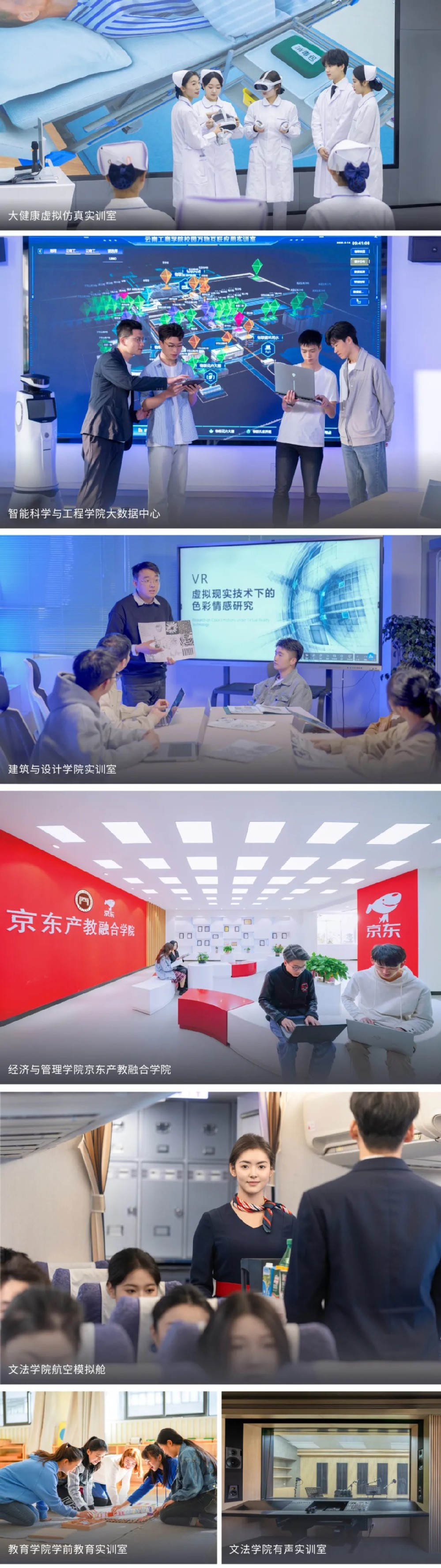 学校高度重视产教融合,先后与华为、360、京东等500余家知名企业建立校企合作关系,建设各类实验实训室201间,包括华为网络信息技术学院、360网络安全学院、京东产教融合学院、西门子智能制造学院、百度云智学院、科大讯飞人工智能学院、北汽新能源学院等12个产业学院,形成了共建师资队伍、共搭实践平台、共建就业创业基地、共研科学项目、共议课程开发、共商人培方案、共搭管理平台、共评培养质量的校企协同育人模式。通过开展“职场面对面”“就业体验周”“访企拓岗”等专项行动,学校2024届毕业生年终去向落实率超过97%,高质量就业率超过50%。