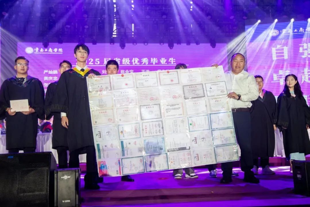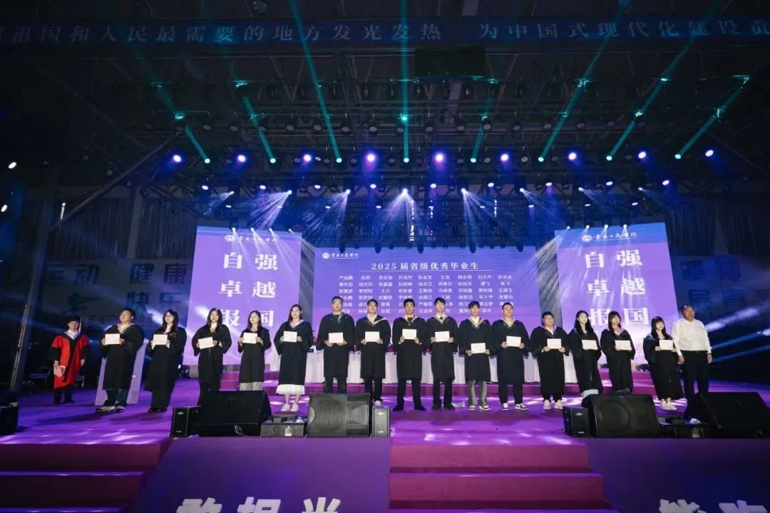 典礼上宣读了《关于表彰2024-2025学年省级、校级优秀毕业生的决定》《关于授予2025届优秀、良好体质健康优良证书的决定》,学校领导为优秀学子颁发证书,表彰他们在校期间的卓越表现。