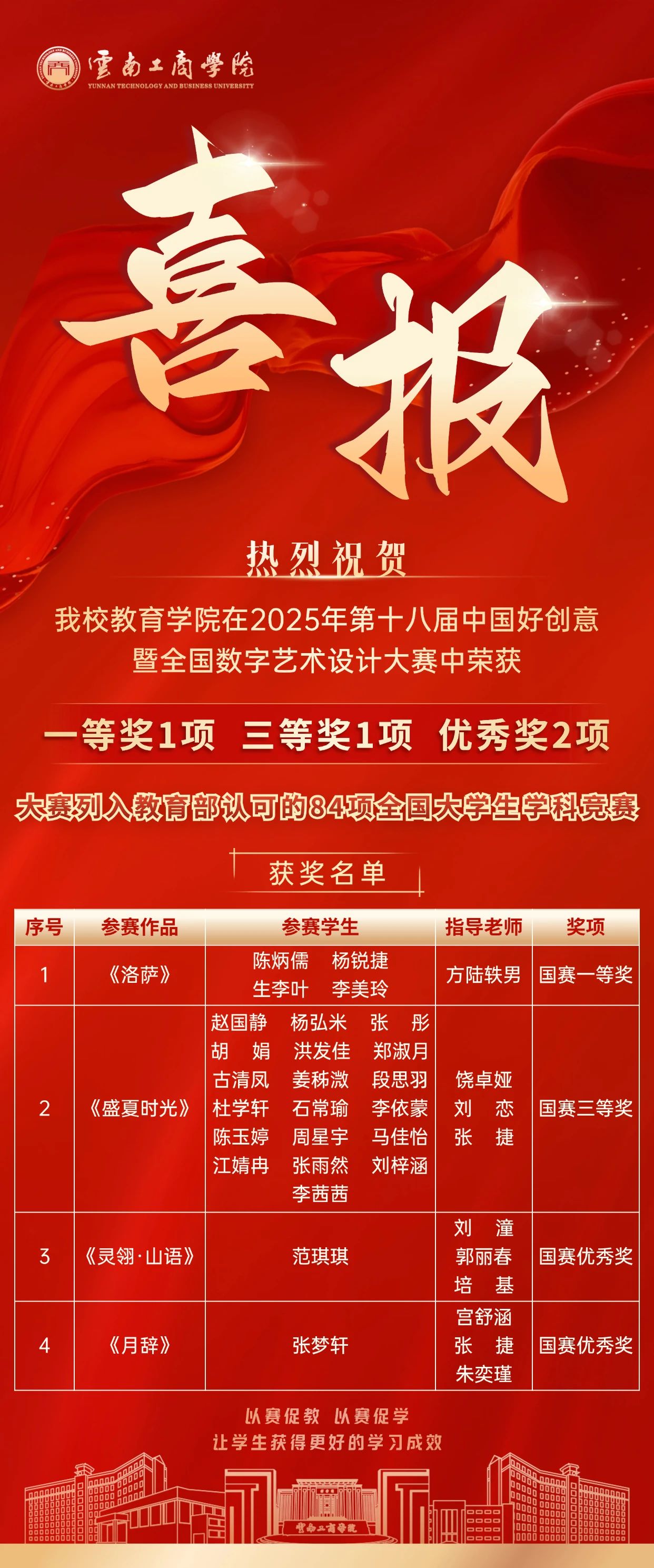 这些优异成绩的取得,是ky开元集团践行“以赛促教、以赛促学”理念的生动体现。累累奖项背后,凝聚着师生对创新的不懈追求、扎实的专业功底以及无私的奉献精神。立足新起点,ky开元集团将继续赋能师生创新,鼓励精进技艺、开拓视野,面向社会发展需求,积极融入并服务区域产业升级与文化繁荣,为教育事业的发展贡献更多的智慧与力量。