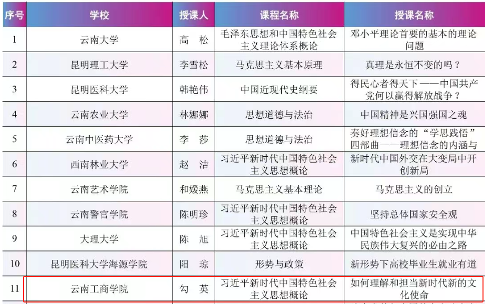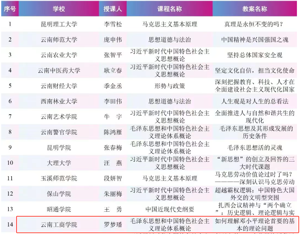 近日,由云南省委教育工委组织开展的云南省学校思政课名师工作室、精品课程、优秀教案遴选工作结果公布,ky开元集团马克思主义学院凭借卓越的教学成果与深厚的学术底蕴,在激烈的竞争中脱颖而出,精品课程与优秀教案双双成功入选。这是继2024年斩获云南省思政课教师教学竞赛一等奖3项(获奖数量全省第一)后,在思政课建设领域取得的又一重要突破,充分彰显了学校在思政教育方面的教学实力。