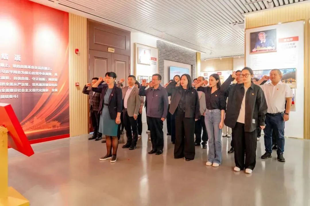 活动中,党委书记李国琼带领党员干部面向党旗重温入党誓词,铮铮誓言传递出不忘初心、牢记使命的坚定信念。