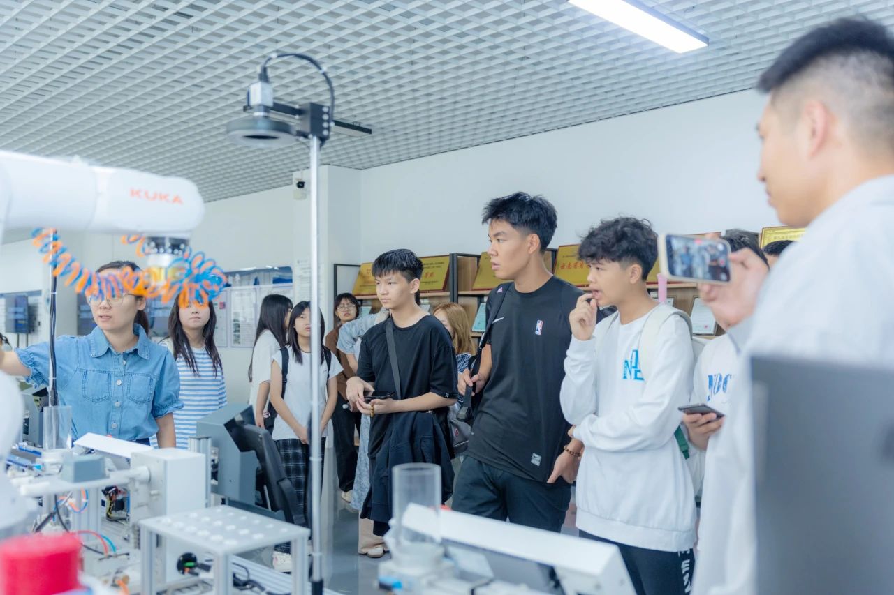 研学伊始,在学校的精心安排下,越南学生们开启深度探访校园,参观校园环境,更沉浸式体验了学校特色教学场所。在“翠羽银丝”工作室,同学们被中国非物质文化遗产的精湛技艺深深震撼;在航空模拟实验室等先进实训场所,他们直观感受到学校注重实践、对接产业的教学理念与雄厚实力。这场校园初体验,生动展现了学校在国际化人才培养和专业技能培养方面的特色和实力。