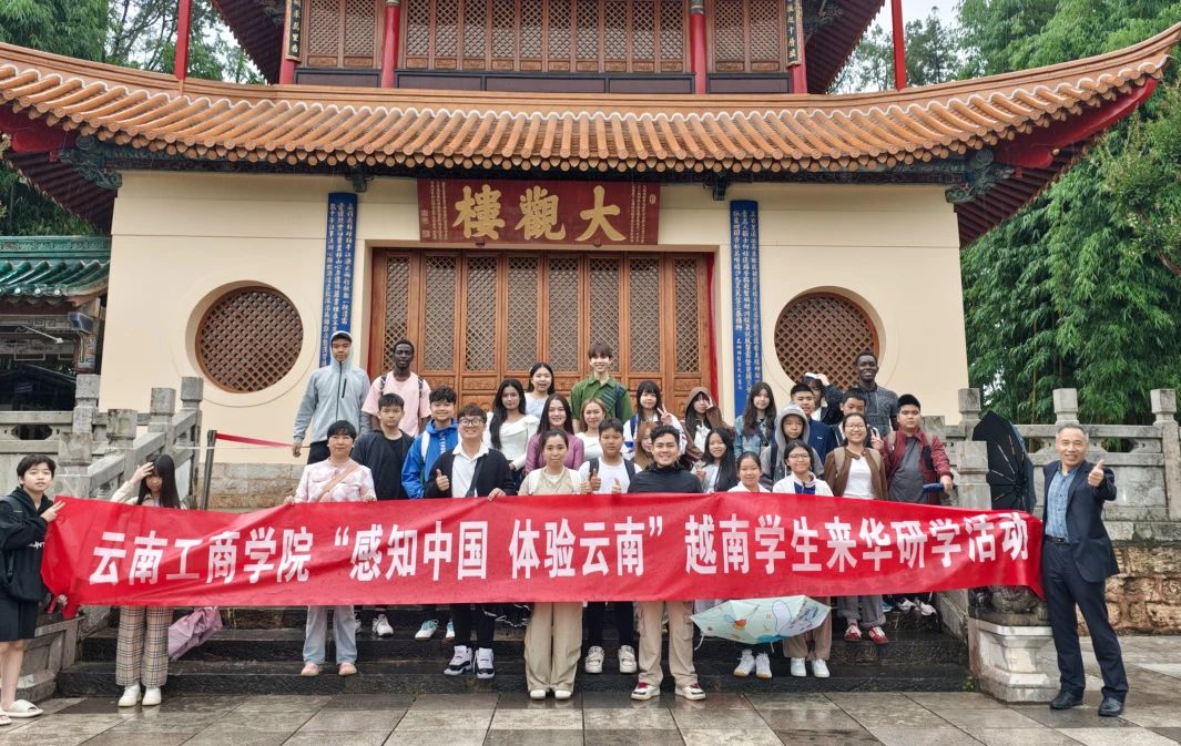 走出校园,研学团重点探访了昆明历史文化地标——大观公园。学子们登临大观楼,远眺滇池壮阔风光,实地感受“天下第一长联”所承载的深厚历史文化底蕴。此次探访不仅领略了自然景观,更成为理解云南历史文脉和中华文化积淀的重要一课。城市探访行程还涵盖了翠湖的秀美风光与昆明老街的市井烟火,越南学子们实地领略了“春城”昆明的独特城市魅力与生活气息,将书本知识与现实感知完美结合。