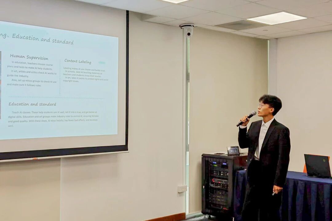 项目尾声,同学们以小组形式开展课题研究与结业汇报,围绕人工智能医疗应用、儿童情绪行为干预、新兴市场金融策略等真实议题,进行全英文展示。新国大教授和企业导师对同学们扎实的专业基础、清晰的逻辑表达和出色的团队协作给予高度评价。