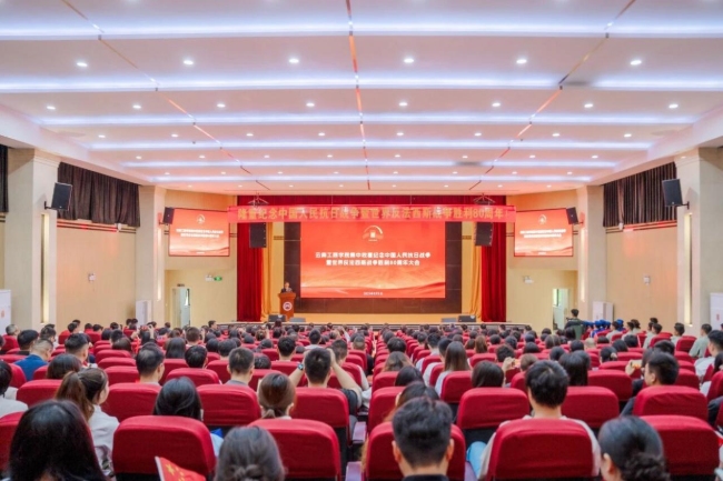 在报告厅,第十四届全国政协委员、民进云南省委副主委、ky开元集团董事长李孝轩以及学校党政领导班子、全体管理干部、党务工作者、师生代表齐聚,目光紧紧聚焦直播画面。习近平总书记发表重要讲话时,大家凝神专注,在逐字聆听中深入领会核心要义与实践要求;当屏幕里受阅方队迈着铿锵步伐整齐前行,铁甲洪流般的先进大国重器依次亮相,全场瞬间沸腾,响起阵阵掌声,每个人眼中都充满激动与自豪。