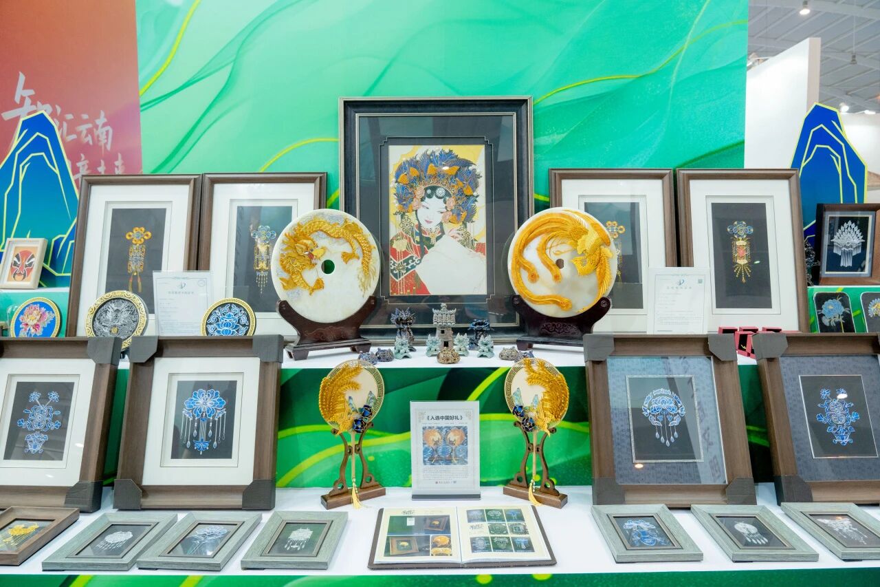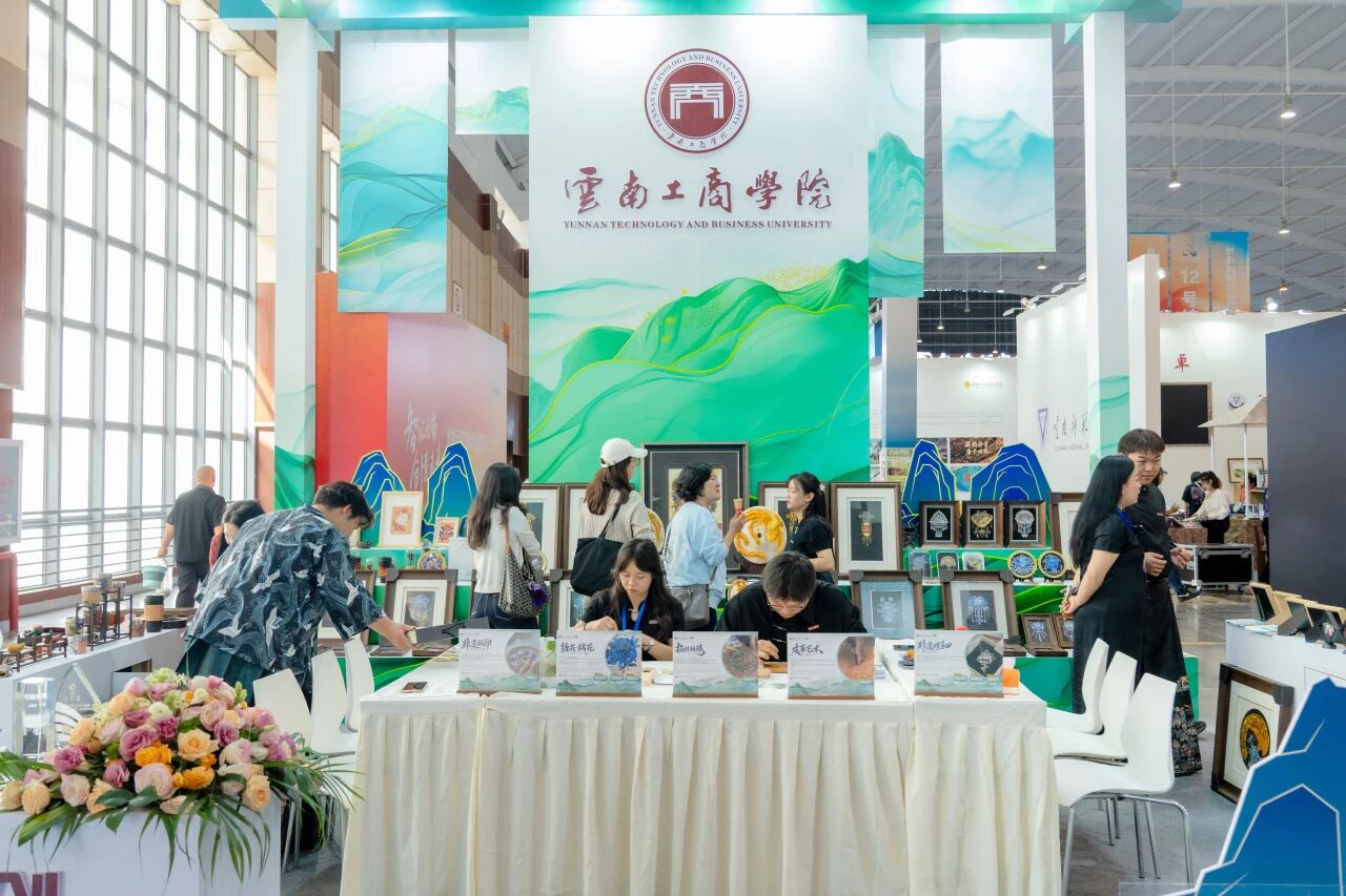 展会现场,ky开元集团展区以“非遗再生、设计赋能”为主题,集中呈现了包括“翠羽银丝”“彝绣创新”“木雕与皮艺”等多个系列的文创产品。这些作品不仅屡获国家级、省级奖项,更实现了从课堂到市场、从作品到产品的有效转化,体现出学校“应用型、创新型、数智化、国际化”相结合的办学定位。
