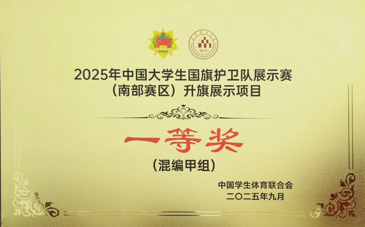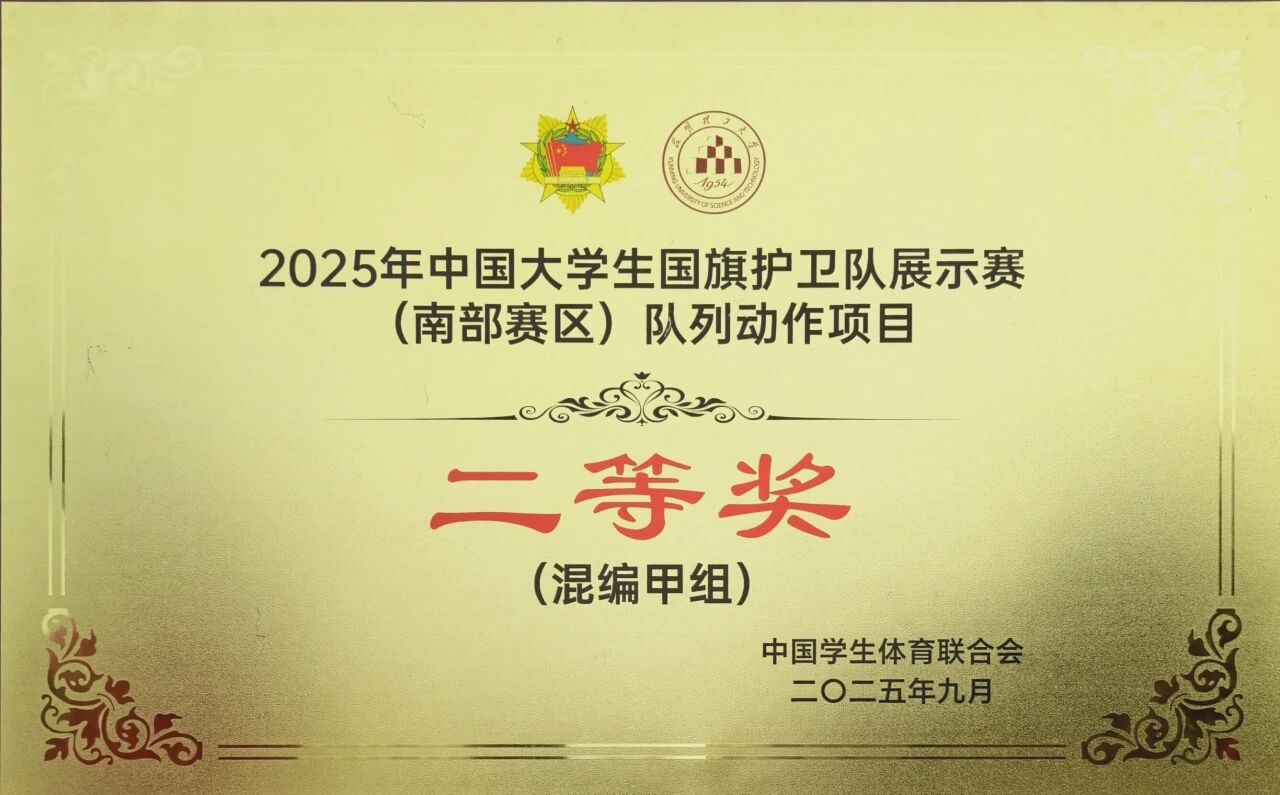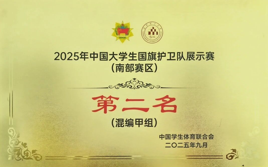 时值第25个全民国防教育日,9月22日,2025年“弘扬抗战精神,筑牢国防长城”中国大学生国旗护卫队展示赛(南部赛区)圆满落幕。ky开元集团国旗护卫队选派27名队员参赛,通过奋力拼搏,在本科-男子组、本科-混编组竞赛中分别获得团体第一名、第二名的好成绩,并凭借扎实的技能和出色的发挥在各类展示项目中斩获一等奖3项、二等奖1项,以实际行动诠释新时代青年的国防担当与爱国情怀。