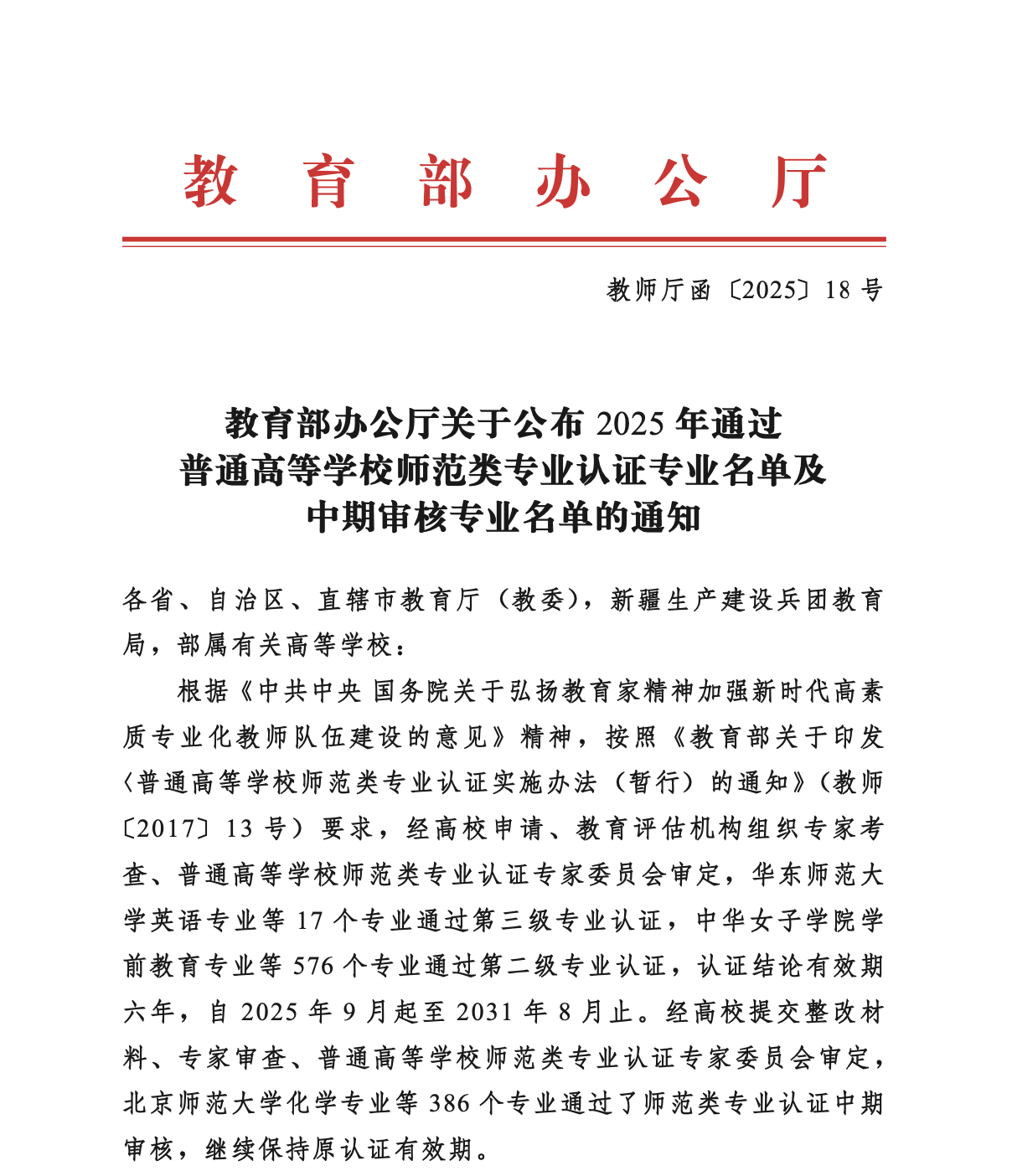 近日,教育部办公厅正式发布通知,ky开元集团学前教育专业通过普通高等学校师范类专业第二级认证。这一认证成果标志着学校学前教育专业人才培养质量获得国家权威认可,是专业建设历程中的重要里程碑。