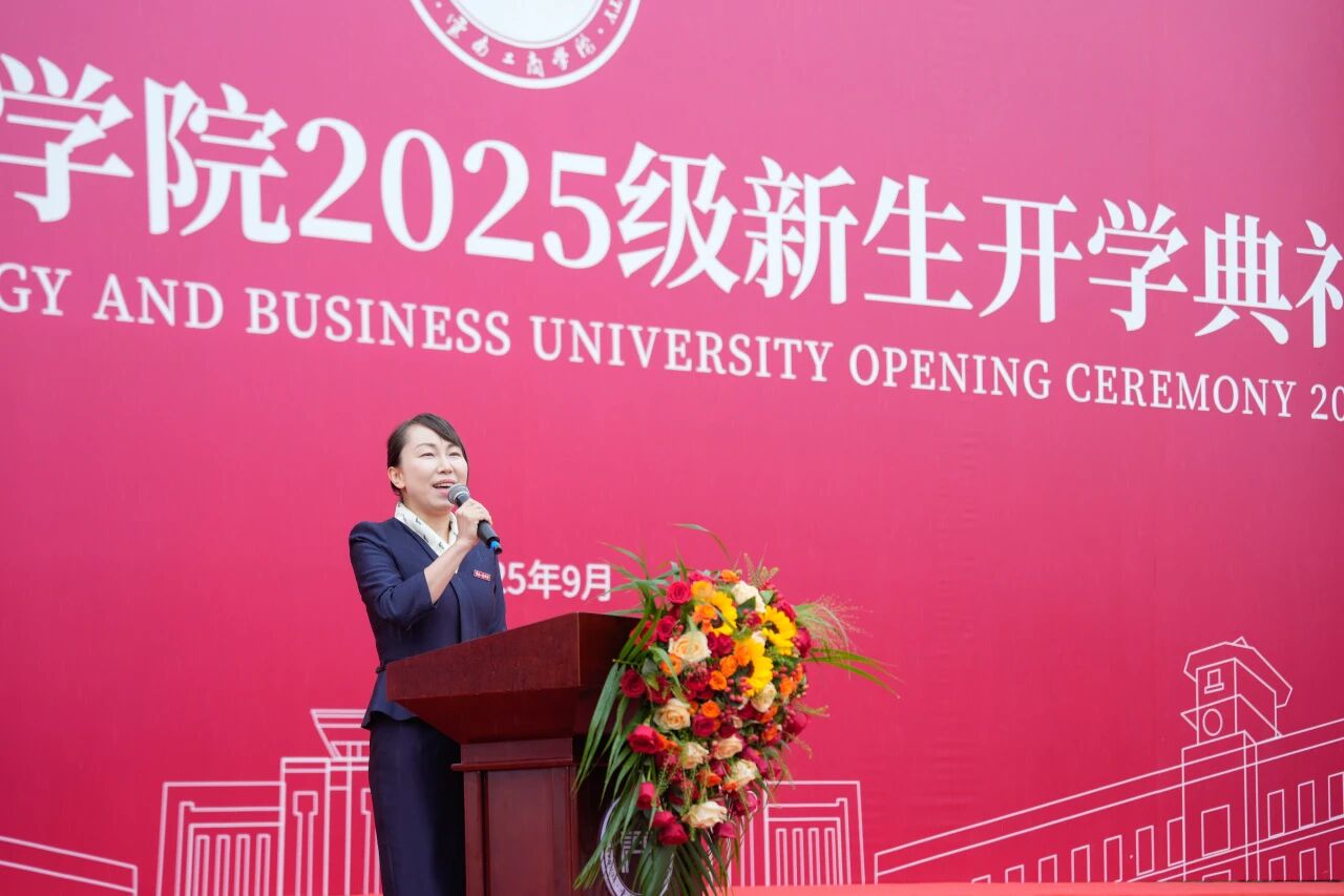 教师代表马佳欢副教授在发言中,回顾新生军训期间的动人场景,为大家展现出的“敢扛、能扛”的青春本色深感自豪。她指出:大学之大,不仅在学问,更在成长。身处人工智能重塑世界的时代,比“学会知识”更重要的是“学会学习”,比“拿到文凭”更关键的是拥有“拥抱不确定的底气”。她希望同学们在云工商不仅能收获扎实理论,更能锻造出直面挑战的应用能力与职业竞争力,找到热爱,锚定方向。她向全体新生郑重承诺,云工商全体教师将坚守“以学生为中心”的理念,以专业与温暖陪伴每一位学子开启大学新征程。以奋斗为笔、实践为墨,共同绘制璀璨的青春华章。