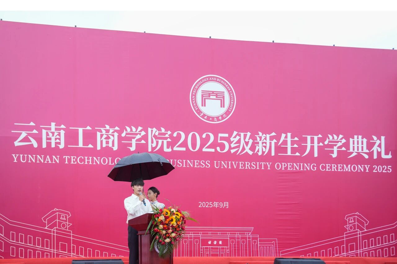来自马里的留学生牛晨与文法学院2025级汉语言文学专业的谢浩宇,作为新生代表共同发出了属于新一代云工商学子的青春强音。牛晨满怀深情地表达了对学校的感谢。他承诺,将和所有国际学生一起,以开放的心态面对差异,以坚韧的意志克服困难,不仅学好专业知识,更愿成为搭建中外友谊的桥梁,用实际行动诠释责任与担当。