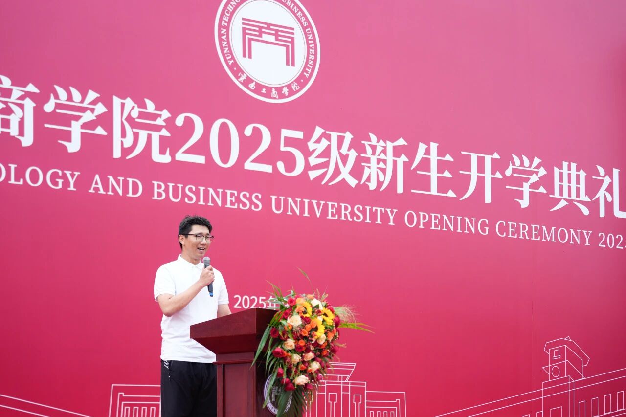 大健康学院2023级护理学秦晓姝与人工智能学院2023级计算机网络技术专业王利凯作为老生代表,向全体新生分享了他们在云工商的奋斗故事与成长感悟。两位学长学姐以截然不同的发展路径,共同诠释了“自强、卓越、报国”的校训精神。结合自身经历,他们为2025级新同学送上“尽早找方向、平衡学与践、勇敢迎未知”的成长箴言,鼓励新生们勇敢追梦,在云工商遇见更好的自己。