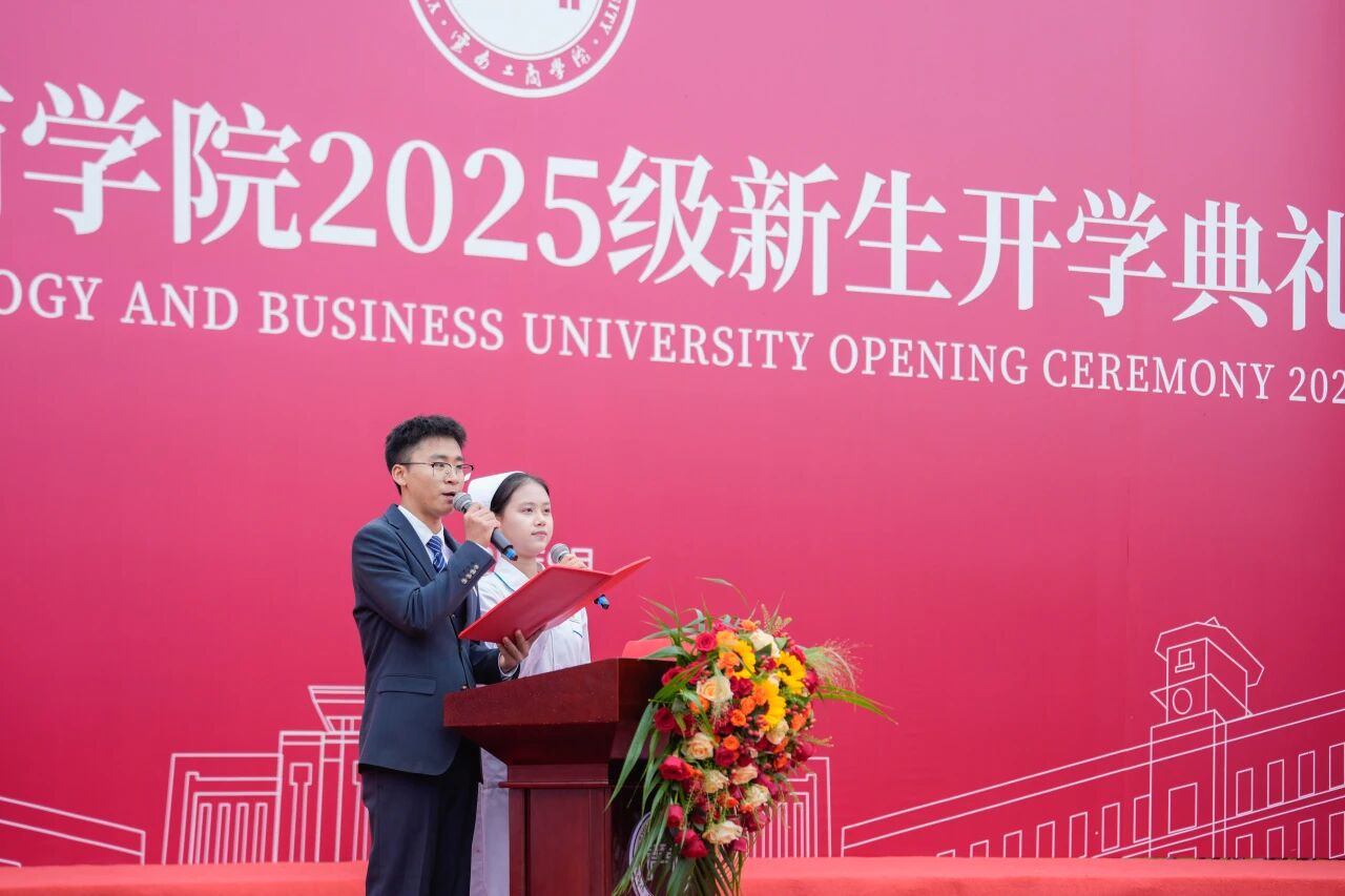 新生代表们深情朗诵《工商礼赞》,回顾学校发展历程,表达对母校的爱意,对未来无限的憧憬。这份礼赞,这份力量,如同种子深植于心,激发同学们以满腔热忱投身学习,以蓬勃朝气拥抱生活,以青春之我创造不凡之绩,书写属于自己的辉煌篇章。