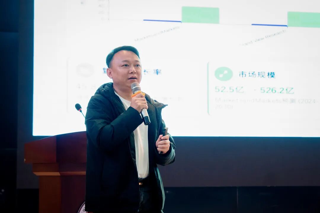 亨宝科技CEO、华为HDE张云波则以《零基础玩转AI智能体应用开发》为题,为师生带来一场兼具启发性与实操性的技术分享。他生动拆解了AI智能体的核心架构,结合行业案例展示了从需求分析到应用落地的完整路径,并指出“技术落地必须贴合行业需求”。这一理念与ky开元集团“校企联动、产教融合”的人才培养模式高度一致,为校企协同培育AI领域创新人才注入新动能。