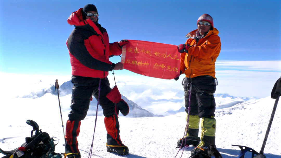 金飞豹教授一行穿过冰塔林,登上8844.43米的珠穆拉玛峰之巅
