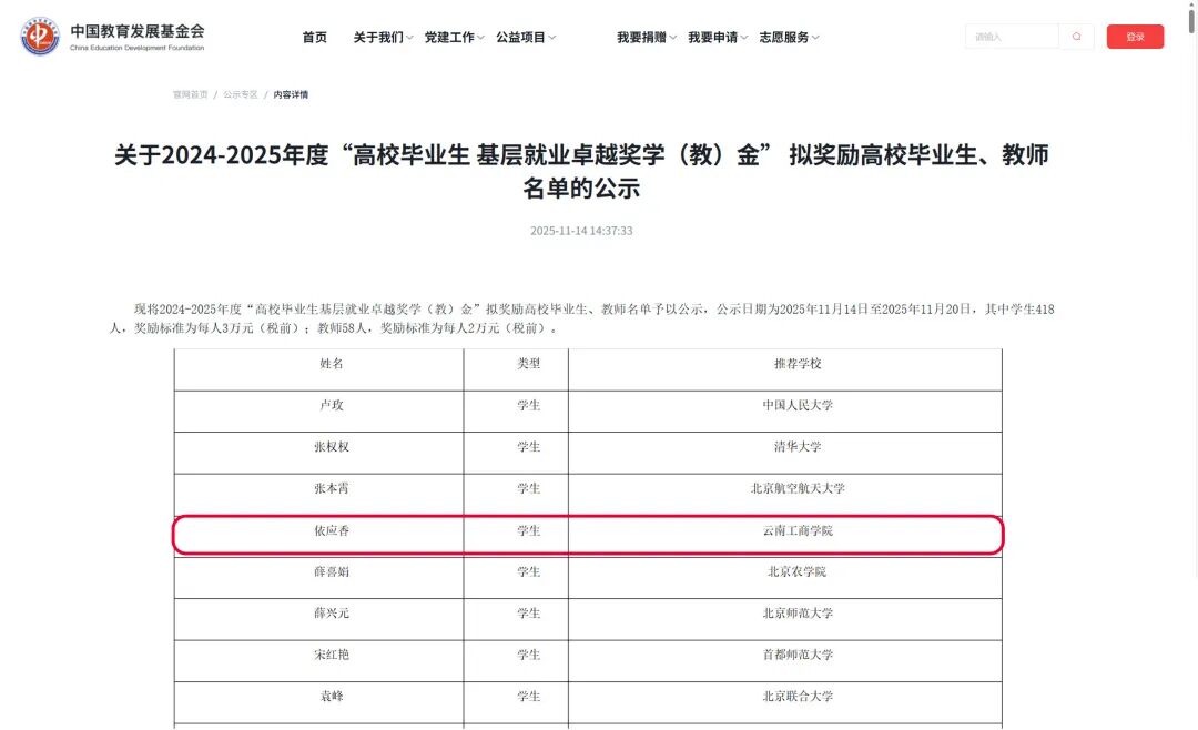 2024-2025年“高校毕业生基层就业卓越奖”获得者