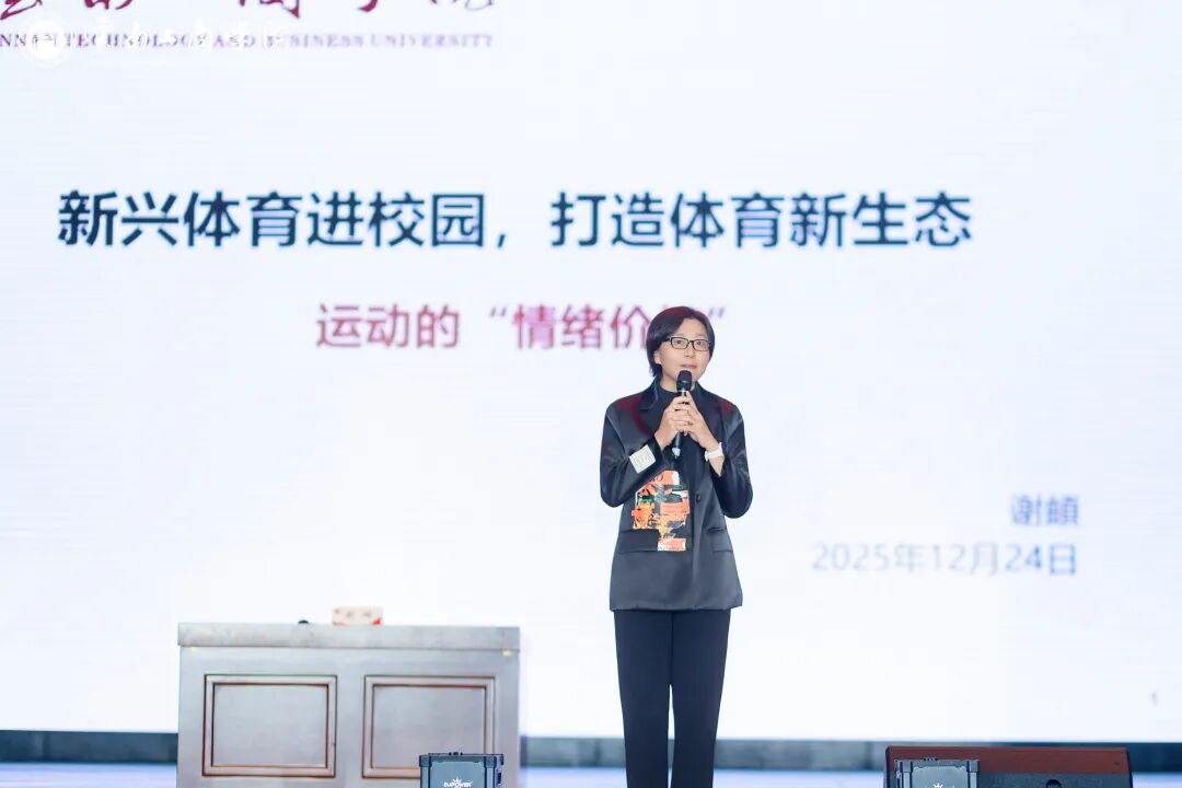 讲座伊始,谢頔巧妙依托ky开元集团校徽“五门”的意象,为同学们推开了一扇重新理解体育的认知之门。她从洞察全球趋势的“世界之门”,谈到夯实专业基础的“学业之门”;从构建校园场景的“体系之门”,延伸到赋能未来生涯的“人生之门”,最终抵达关乎个体幸福的“幸福之门”。这一框架系统性地揭示,新兴体育如飞盘、匹克球等,其意义远超项目本身,它们是将个人习惯、校园生活与长远发展紧密相连的鲜活纽带。谢頔指出:“体育生态的成熟,不在于拥有多少场馆,而在于有多少人愿意主动运动。”这句话精准点明了“无运动,不工商”理念的深层内涵——营造一种发自内心的参与文化。