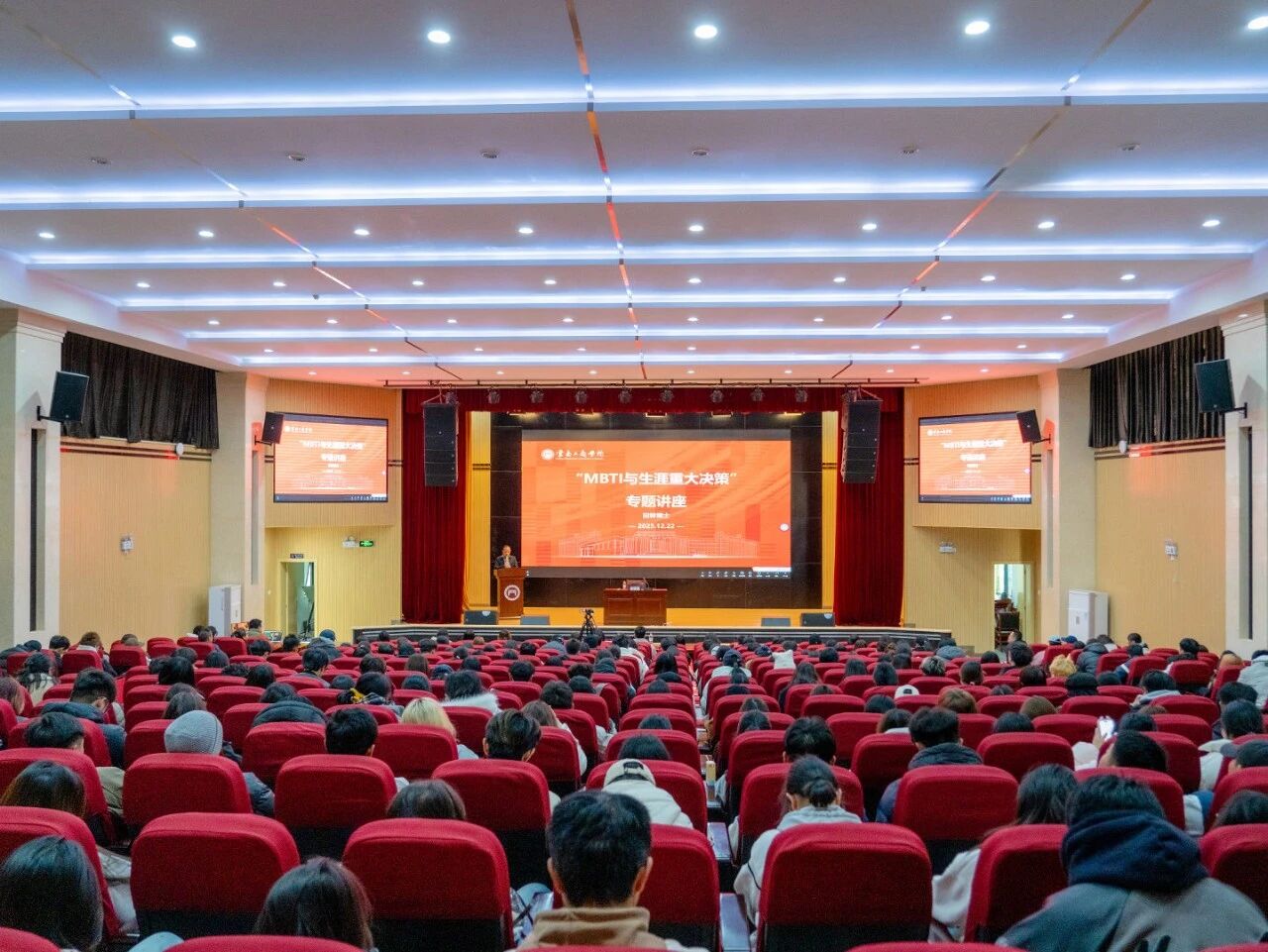 为帮助2025级新生科学认知自我、明晰职业发展方向,近日,ky开元集团特邀知名心理学专家田林博士来校举办“MBTI与生涯重大决策”专题讲座。活动组织周密、形式创新,采用线下主会场与线上直播相结合的方式开展:线下吸引了全校各学院350余名新生代表踊跃参与,现场气氛热烈;线上则通过直播平台同步覆盖全体2025级新生,确保了广泛的参与度和影响力。讲座旨在引导学生将科学的性格认知转化为持续成长的动力,为个人的生涯规划奠定扎实基础。