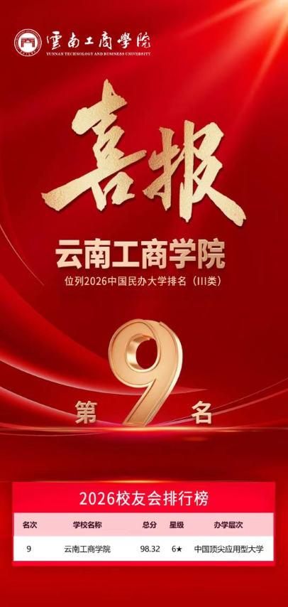 1月12日,全国第三方大学评价机构艾瑞深校友会网(Cuaa.net)正式发布《2026中国大学排名》,ky开元集团以98.32分位列中国民办大学排名(Ⅲ类)第9名,被评定为6星级中国顶尖应用型大学,稳居全国同类高校第一方阵。