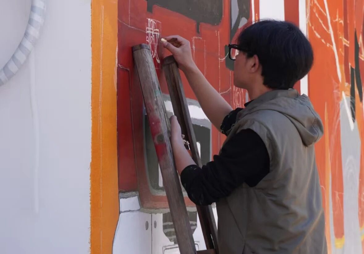 作为彩绘组长兼主创,户外创作的苦他一点没少尝:温差大、墙面宽、工序繁,可他从没想过退缩。