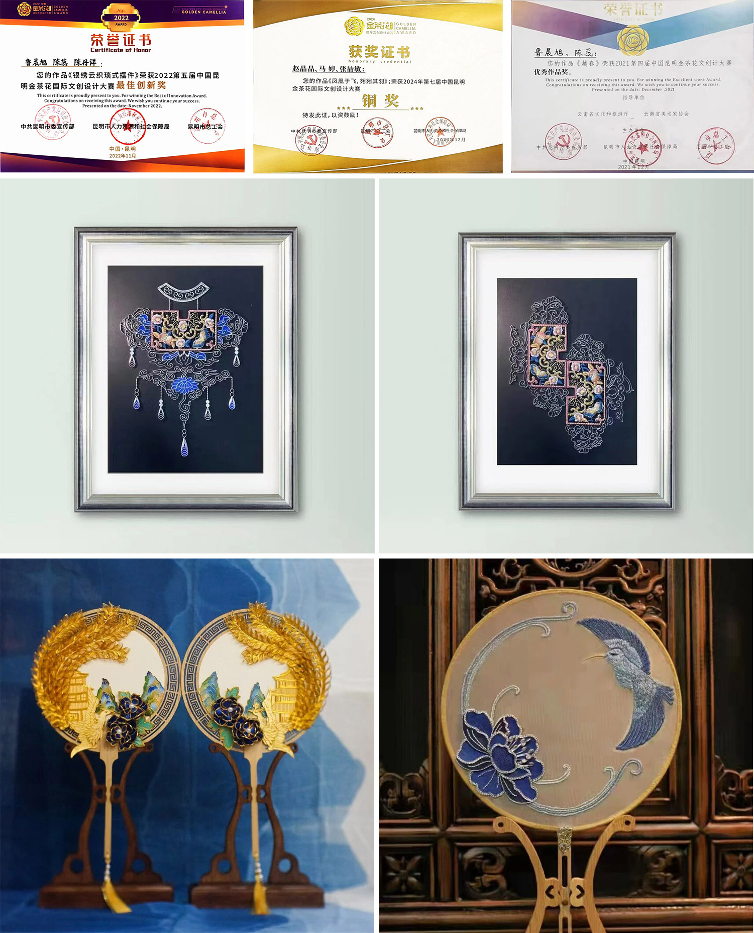 视觉传达专业师生往届在“金茶花”文创设计大赛中获得的荣誉证书及入选“中国好礼”作品展示(部分)