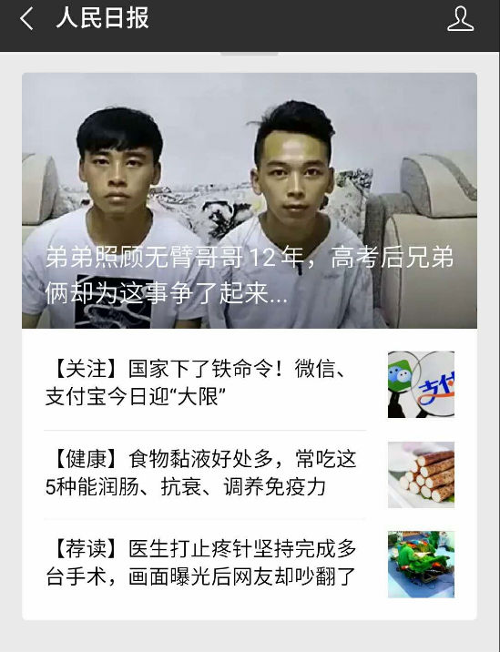 最近两天,《人民日报》、中新社、云南网等全国多家媒体集中报道了云南好弟弟照顾无臂哥哥12年,兄弟俩希