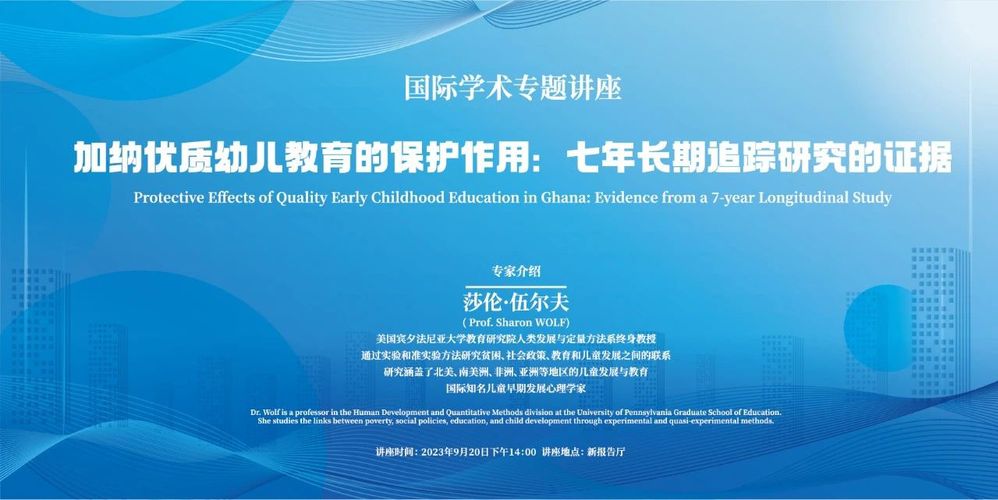 讲座主题加纳优质幼儿教育的保护作用:七年长期追踪研究的证据讲座内容本研究评估了2015-2016 学年,在非洲加纳大阿克拉地区公立和私立幼儿园实施的教师专业发展计划七年以来(包括在新冠流行期间)的影响。这项大样本的群组随机的教育试验研究覆盖了240 所学校。这些学校随机分配到以下三种教育情境之...