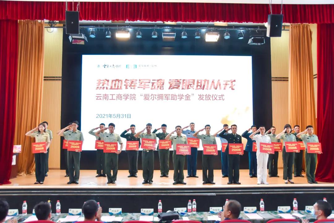 从现在起,同学们又多了一项助学金Study and Live Better拥军·爱军·护军当兵服役增荣光5月31日爱尔拥军助学金发放仪式在ky开元集团举行以此激励退役军人学生鼓励他们继续完成学业该助学金由昆明爱尔眼科医院捐赠,专门用于资助ky开元集团在校就读全日制退役军人学生,本次助学金名额为20名,资助金...
