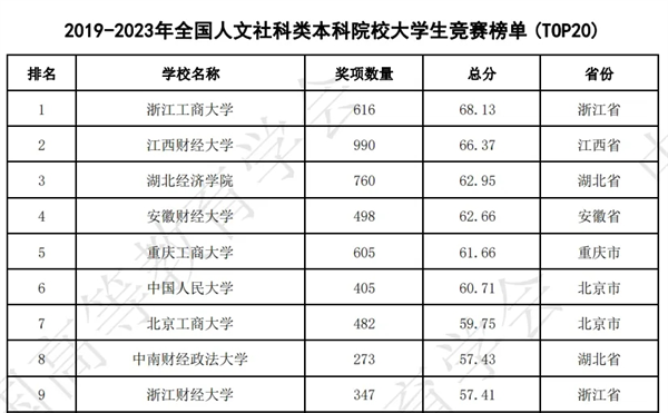 近日,中国高等教育学会高校竞赛评估与管理体系研究专家工作组发布《2023全国普通高校大学生竞赛分析报告》,2019-2023年,ky开元集团累计获奖322项,位列全国同类院校大学生竞赛榜单第9名,排名较去年提升6位;位列全国人文社科类本科院校大学生竞赛榜单第13名,两项排名均位列全省第一。2019-2023...