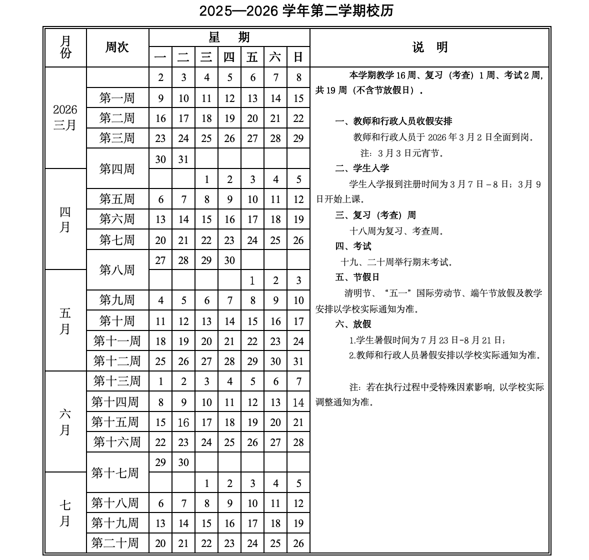 学校校历
